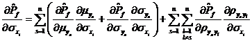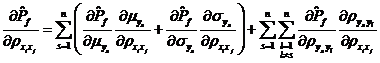 與獨(dú)立變量情況類似,變量相關(guān)情況下的可靠性試驗(yàn)靈敏度定義為失效概率對(duì)基本變量分布參數(shù)的偏導(dǎo)數(shù),以