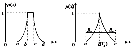 當(dāng)b、c兩點(diǎn)重合時(shí),隸屬函數(shù)蛻變?yōu)橄率?/font>,其形狀如圖7.2(b)所示。