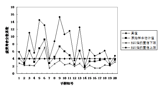 。隨機抽取容量為5、10和15的子樣各20組,與文獻[1]采用相同的可靠度和置信度要求,即可靠度