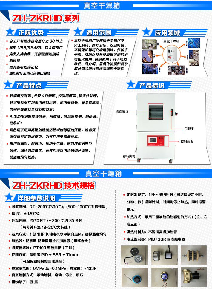 鼓風(fēng)真空試驗(yàn)箱廣泛應(yīng)用于生物化學(xué),化工制藥、醫(yī)療衛(wèi)生、農(nóng)業(yè)科研、環(huán)境保護(hù)等研究應(yīng)用領(lǐng)域,作粉末干燥、烘培以及各類玻璃容器的消毒和殺菌用。特別適合于對(duì)干燥熱敏性、易分解、易氧化物質(zhì)和復(fù)雜成分物品進(jìn)行快速有效的干燥處理。